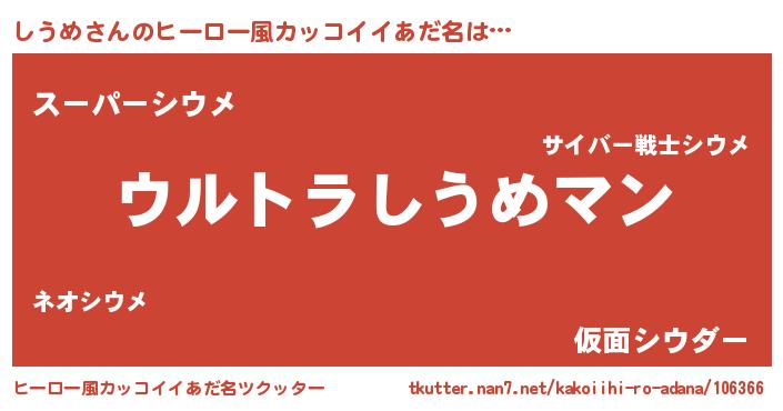 | 意味不明あだ名 | 『しうめフォーエバー』『ペロリンしうめ』 |