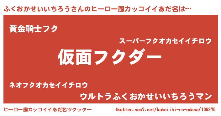 | ポケモン風あだ名 | 『フークイ』『ヒフクオカセイイチロウ』 |
