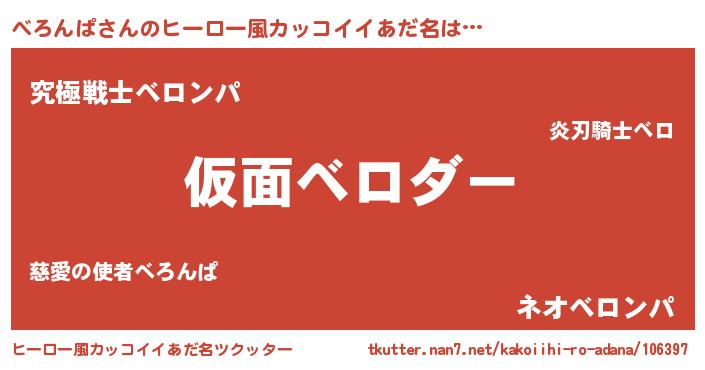 | 男性向けラノベタイトル風あだ名 | 『魔弾の王とべろんぱ』 |