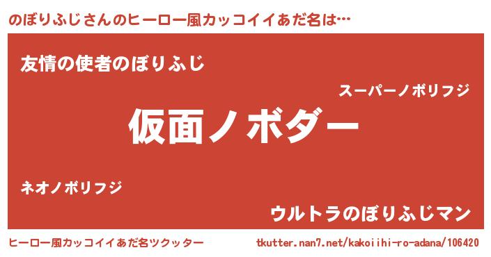 | 男性向けラノベタイトル風あだ名 | 『この素晴らしい世界にのぼりふじを!』 |