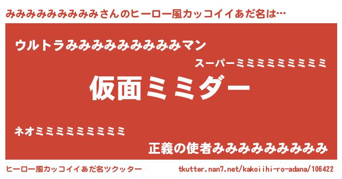 | 男性向けラノベタイトル風あだ名 | 『魔弾の王とみみみみみみみみみ』 |