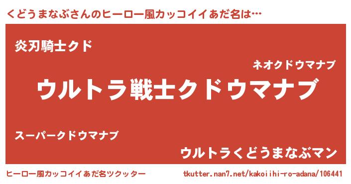 | 男性向けラノベタイトル風あだ名 | 『緋弾のクドウマナブ』 |