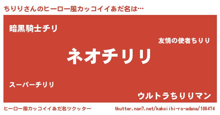 | 男性向けラノベタイトル風あだ名 | 『ちりりという概念が存在しない退屈な世界 』 |