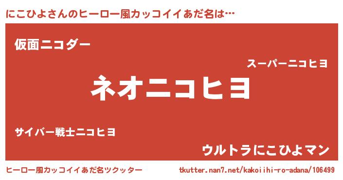 | 男性向けラノベタイトル風あだ名 | 『緋弾のニコヒヨ』『にこひよの憂鬱』 |