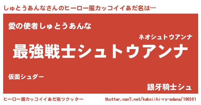 | 意味不明あだ名 | 『自称しゅとうあんな』 |