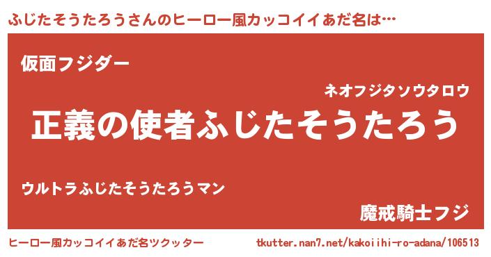 | 男性向けラノベタイトル風あだ名 | 『おまえをオタクにしてやるから、俺をふじたそうたろうにしてくれ! 』 |
