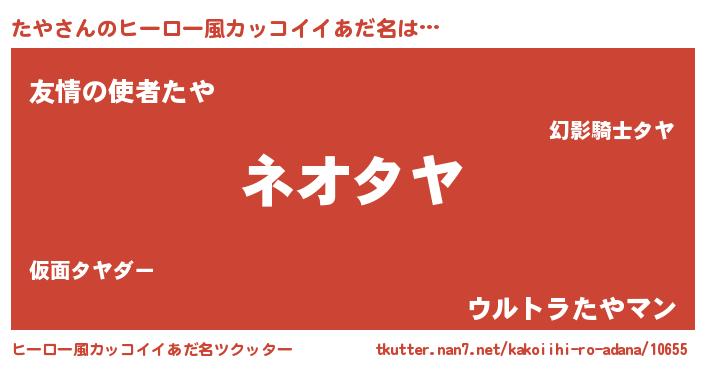 | 男性向けラノベタイトル風あだ名 | 『たやという概念が存在しない退屈な世界 』 |