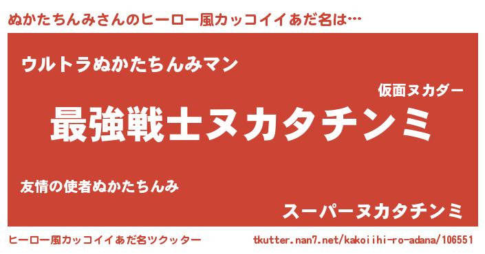 | 意味不明あだ名 | 『自称ぬかたちんみ』 |