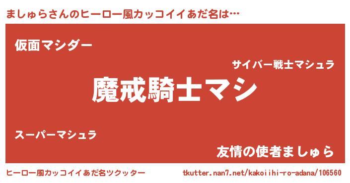 | 男性向けラノベタイトル風あだ名 | 『転生したらましゅらだった件』 |