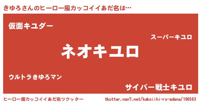| 男性向けラノベタイトル風あだ名 | 『きゆろという概念が存在しない退屈な世界 』 |