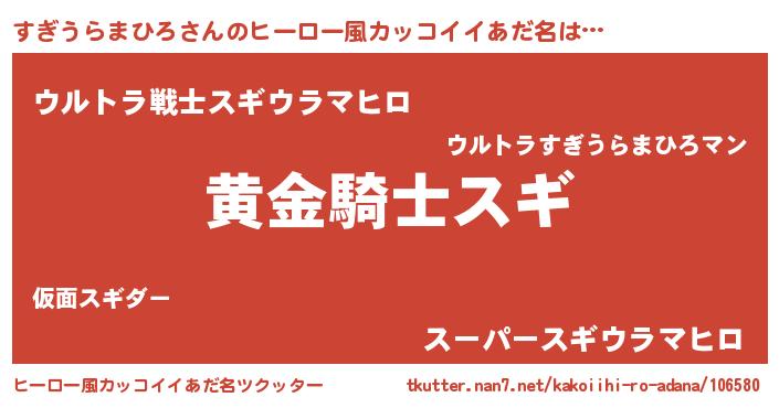 | 胡散臭い通販商品みたいなあだ名 | 『信頼と実績のサプリメント…その名も「すぎうらまひろ」』 |