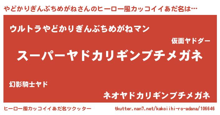 | 胡散臭い通販商品みたいなあだ名 | 『必ず成功する水晶球…その名も「やどかりぎんぶちめがね」』 |