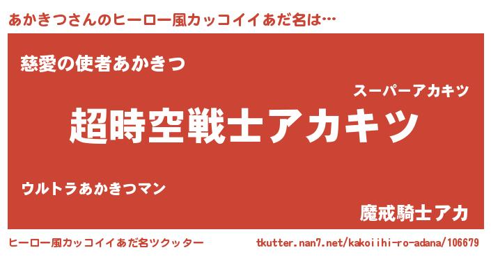 | 女子向けラノベタイトル風あだ名 | 『あかきつなんてお断りですっ。』 |