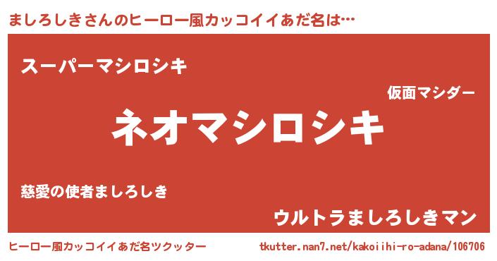 | ヘコむあだ名 | 『ましろしき(苦笑)』『ましもー』 |