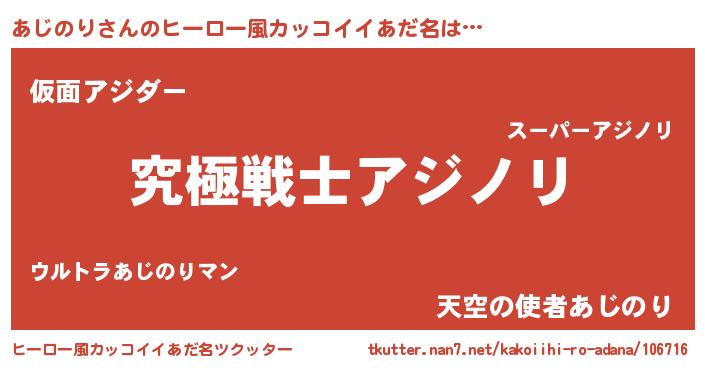 | 男性向けラノベタイトル風あだ名 | 『Re:あじのりから始める異世界生活』 |
