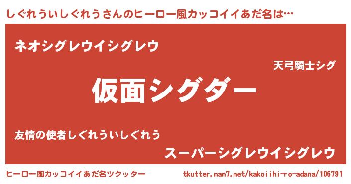 | 欧米人風あだ名 | 『ダレノガレしぐれういしぐれう』 |