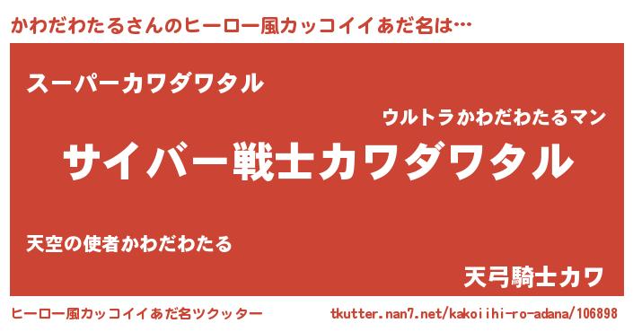 | 意味不明あだ名 | 『自称かわだわたる』 |