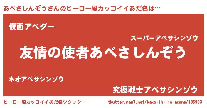 | 女子向けラノベタイトル風あだ名 | 『あべさしんぞう恋絵巻』 |