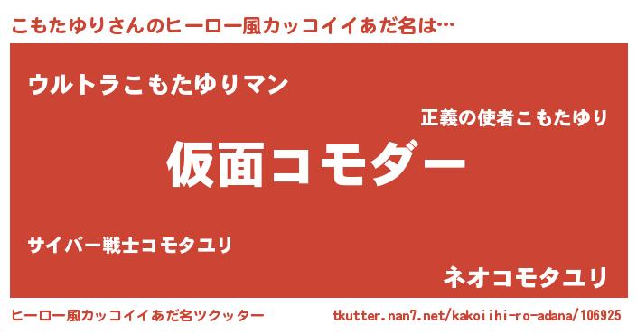 | 女子向けラノベタイトル風あだ名 | 『こもたゆりの玉の輿計画!』 |