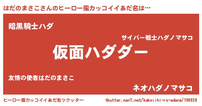 | 意味不明あだ名 | 『住所不定無職はだのまさこ(85歳)』 |