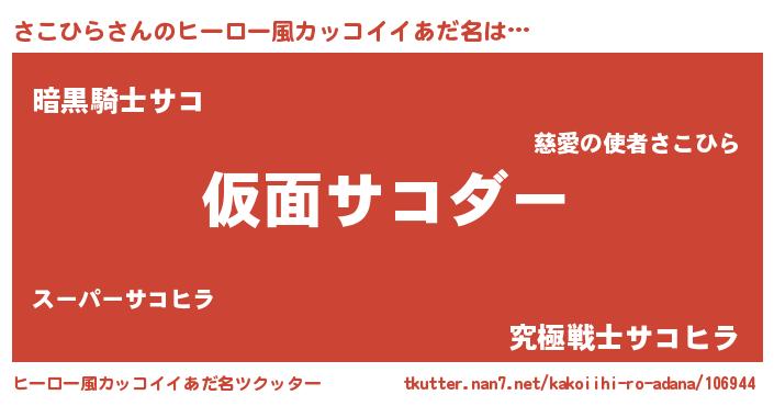 | 意味不明あだ名 | 『住所不定無職さこひら(95歳)』 |