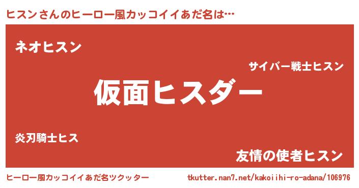 | 男性向けラノベタイトル風あだ名 | 『この素晴らしい世界にヒスンを!』 |