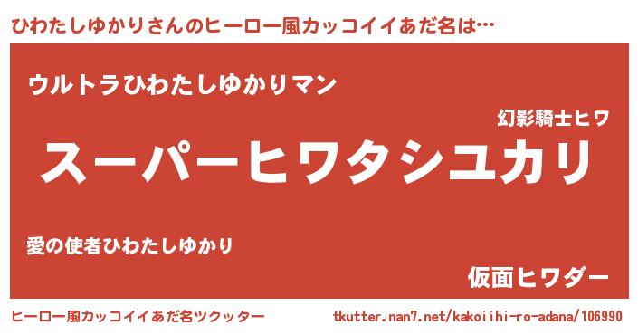 | 恥ずかしいあだ名 | 『プリティーひわたしゆかり』『ひわちん』 |