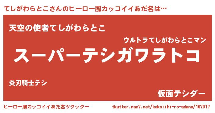 | 胡散臭い通販商品みたいなあだ名 | 『億万長者になれるブレスレット…その名も「てしがわらとこ」』 |