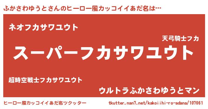 | 胡散臭い通販商品みたいなあだ名 | 『モテモテ間違いなし霊験あらたかなお札…その名も「ふかさわゆうと」』 |