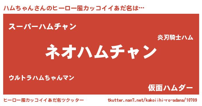 | 胡散臭い通販商品みたいなあだ名 | 『前代未聞の健康食品…その名も「ハムちゃん」』 |