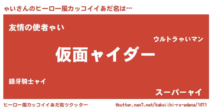 | 胡散臭い通販商品みたいなあだ名 | 『あなたにだけ特別に提供する限定10本のレアな日本酒…その名も「ゃい」』 |