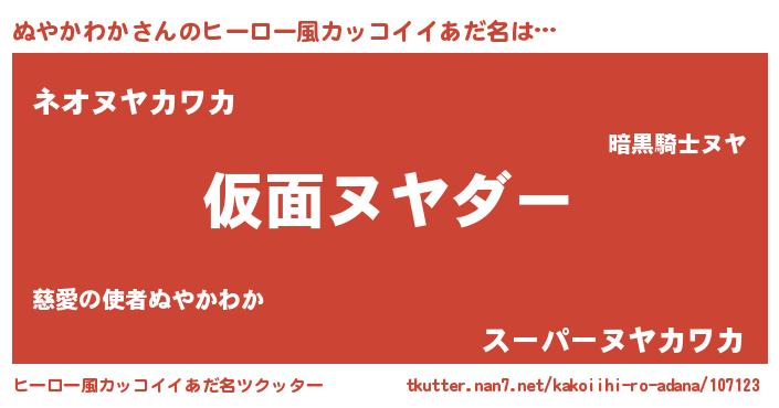 | 男性向けラノベタイトル風あだ名 | 『この素晴らしい世界にぬやかわかを!』 |