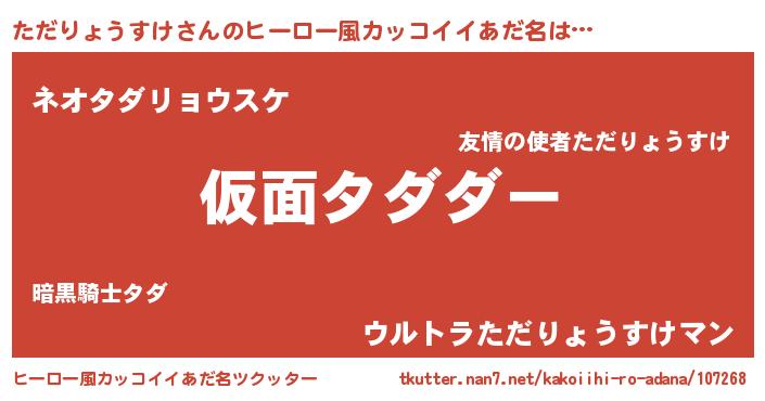 | 男性向けラノベタイトル風あだ名 | 『魔弾の王とただりょうすけ』 |