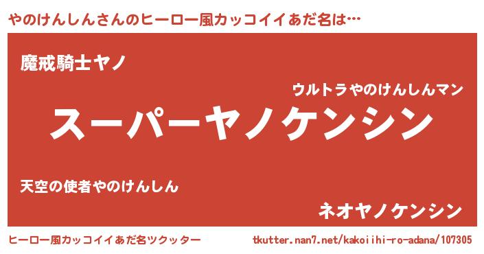 | 男性向けラノベタイトル風あだ名 | 『やのけんしんの憂鬱』 |