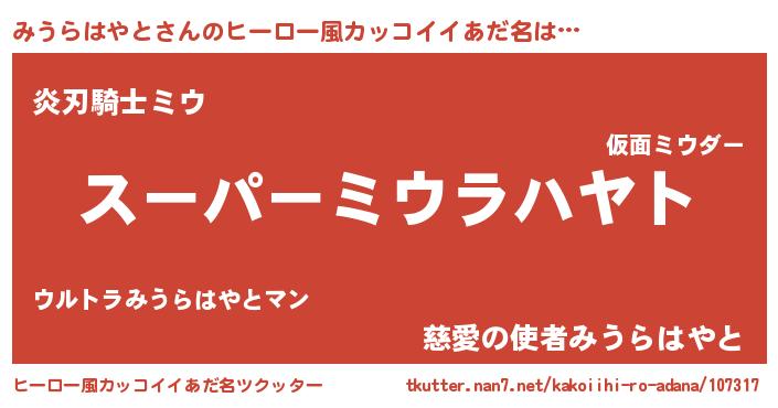| 男性向けラノベタイトル風あだ名 | 『ミウラハヤトアートオンライン』 |