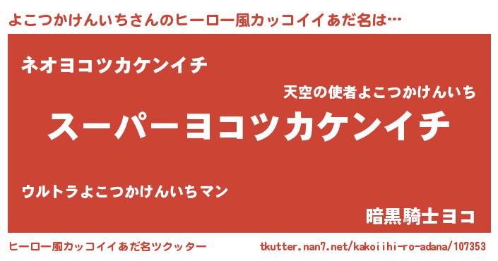 | 胡散臭い通販商品みたいなあだ名 | 『必ず成功する霊験あらたかなお札…その名も「よこつかけんいち」』 |