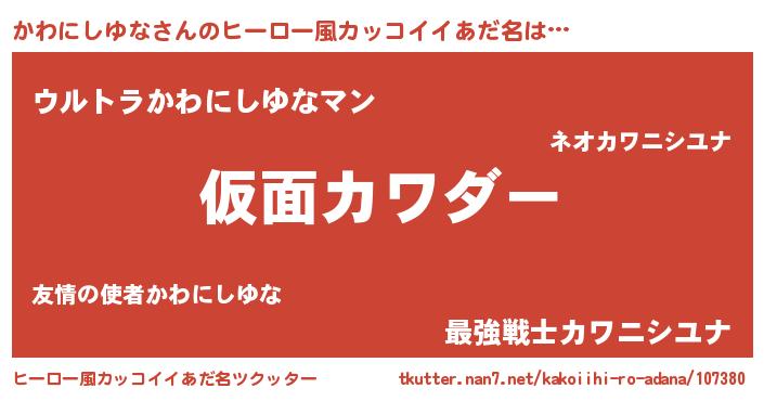 | 男性向けラノベタイトル風あだ名 | 『この素晴らしい世界にかわにしゆなを!』 |