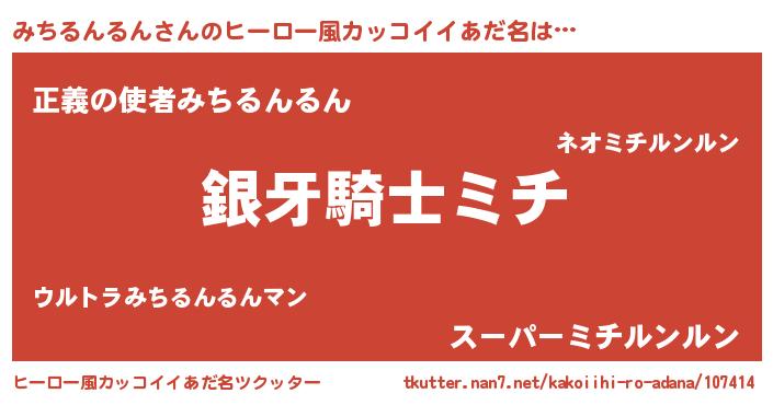 | 男性向けラノベタイトル風あだ名 | 『ダンジョンにみちるんるんを求めるのは間違っているだろうか』 |