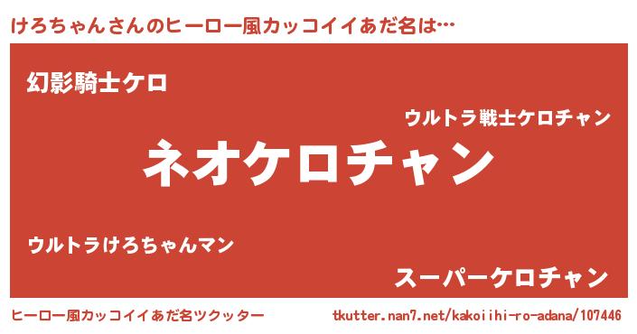 | 伝説のあだ名 | 『古文書に記された吟遊詩人けろちゃん』 |