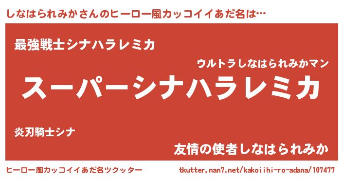 | 男性向けラノベタイトル風あだ名 | 『シナハラレミカアートオンライン』 |