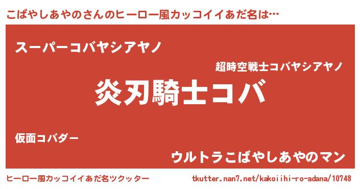 | 意味不明あだ名 | 『とにかく怪しいこばやしあやの』 |