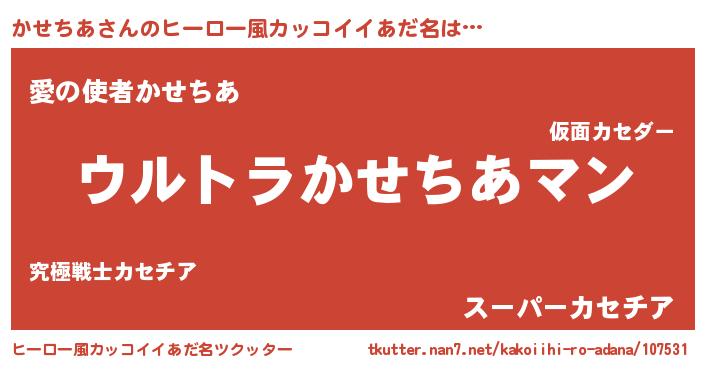 | 女子向けラノベタイトル風あだ名 | 『かせちあの玉の輿計画!』 |