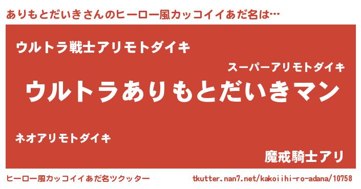 | 欧米人風あだ名 | 『ありもとだいきクリステル』 |