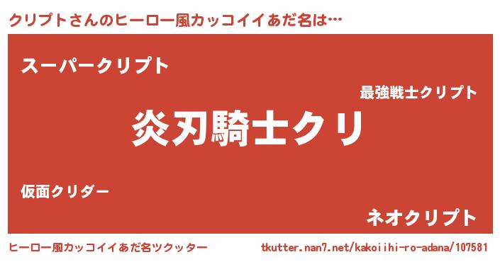 | 女子向けラノベタイトル風あだ名 | 『クリプト様がみてる』『闇のクリプト』 |