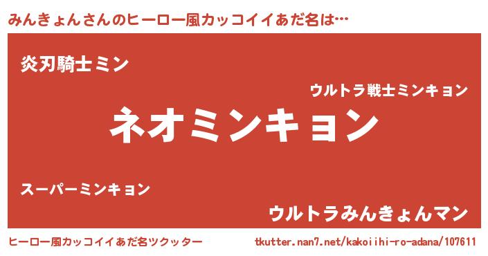 | 意味不明あだ名 | 『永久保存みんきょん』『自称みんきょん』 |