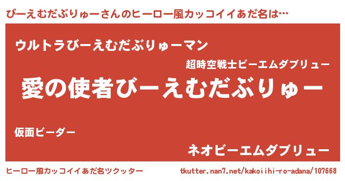 | 女子向けラノベタイトル風あだ名 | 『びーえむだぶりゅー恋絵巻』 |