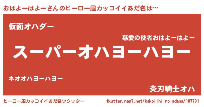 | ピコ太郎風あだ名 | 『オコ次郎』『オハ八郎』『オオ太郎』 |