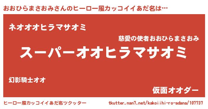 | 男性向けラノベタイトル風あだ名 | 『おおひらまさおみの憂鬱』 |