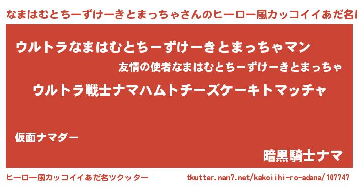 | 肩書あだ名 | 『なまはむとちーずけーきとまっちゃ総統』 |