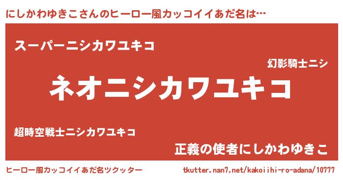 | 女子向けラノベタイトル風あだ名 | 『異世界で失敗しない100のにしかわゆきこ』 |